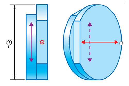 石英波片也叫相位延迟片,波片是能使互相垂直的两光振动间产生附加光程差 ( 或相位差)的光学器件。通常由具有精确厚度的石英双折射晶片做成,其光轴与晶片表面平行。
